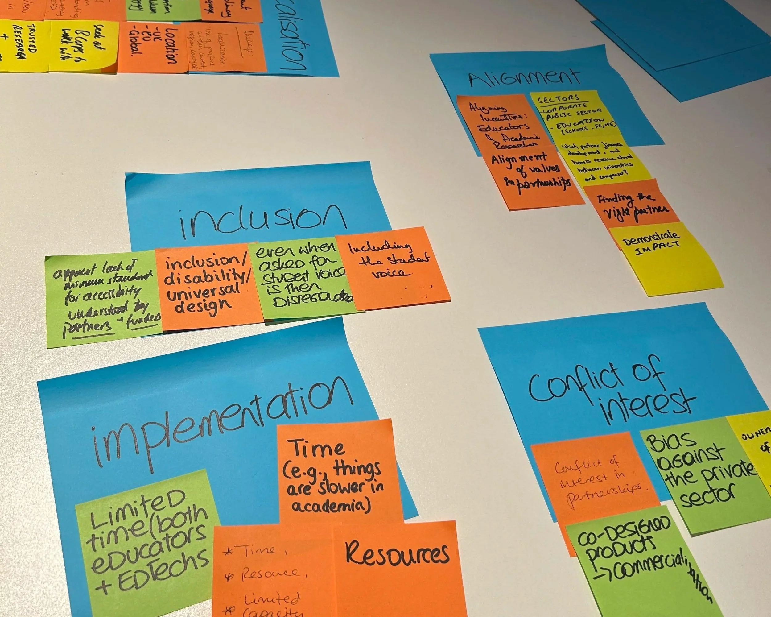All insights are carefully documented through notes and recordings, creating a comprehensive record that informs future workshops and events. This collaborative process doesn't just generate ideas—it builds the shared understanding necessary for meaningful progress in EdTech partnerships.